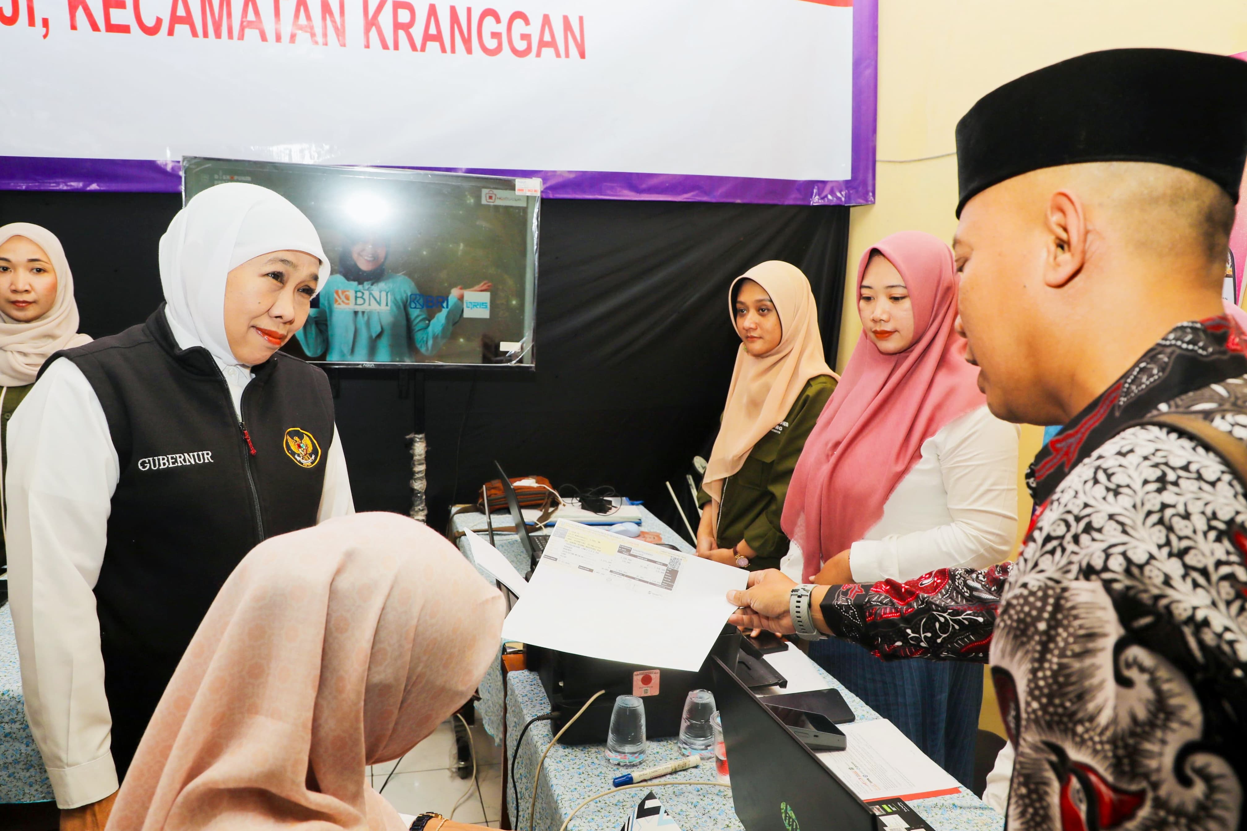 MOJOKERTO, 21 JULI 2025 - Gubernur Jawa Timur Khofifah Indar Parawansa mengunjungi Koperasi Merah Putih (KMP) di Kelurahan Miji, Kec. Prajuritkulon, Kota Mojokerto, Minggu (20/7). Dalam kunjungan tersebut, dirinya didampingi oleh Wali Kota Mojokerto Ika Puspitasari.