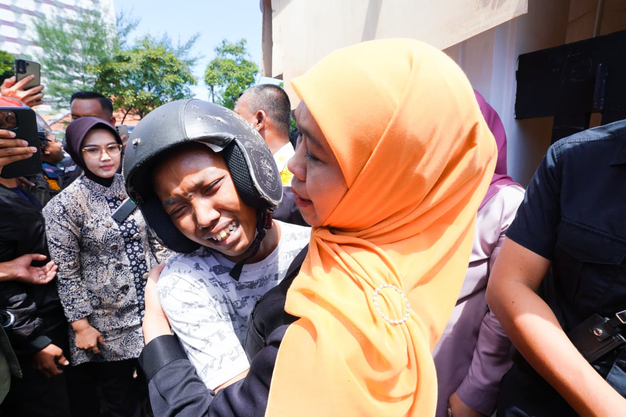 Temui Masyarakat di Depan Gedung Negara Grahadi, Gubernur Khofifah Dengarkan Aspirasi Masyarakat Sampai Mengajak Masuk Halaman Grahadi Bagi Sembako
